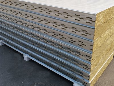 鍍鋅彩鋼夾芯巖棉烘道板其上下表面采用一面鍍鋅鋼板一面彩鋼板或雙面鍍鋅鋼板,厚度為0.4-0.8mm。通過自動化連續(xù)成型機,經(jīng)壓型后用高強粘合劑粘合而成。巖棉塊交錯鋪設(shè),其纖維走向垂直于鍍鋅彩鋼夾芯巖棉烘道板的上下表面,并緊密相接充實了防火保溫鍍鋅夾芯巖棉烘道板的整個縱橫截面。巖棉塊之間和巖棉與上、下層鋼板之間通過高強度發(fā)泡劑粘接復(fù)合而成。鍍鋅巖棉烘道板具有防火、保溫、隔音、隔熱等性能。